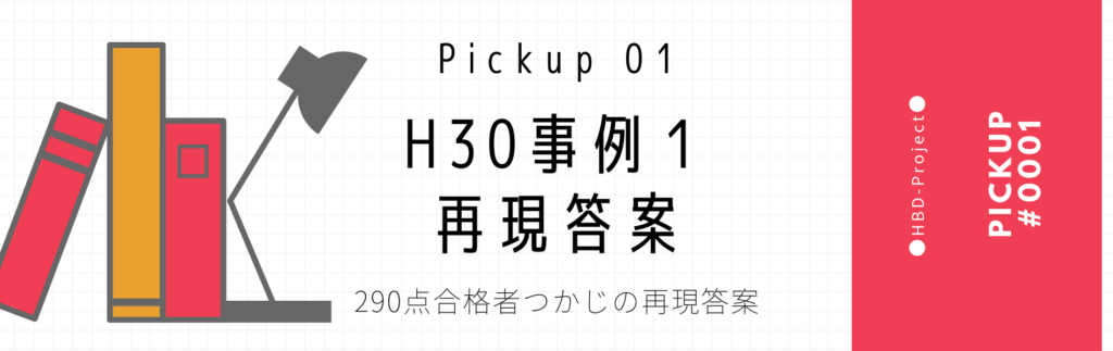2019年6月26日 / 最終更新日 : 2019年6月26日 HBD Admin Pickup 再現答案:H30年度事例Ⅰ 290点合格者つかじの実際の再現答案のH30年度事例Ⅰです。 2次試験は解答が公開されないため、捉えようのない試験といわれます。 予備校の答案や書籍の答案はじっくりと分析した状態で精度の高い答案を提供しようとしています。 80分という試験時間、一年に一回というプレッシャーの中という実際の試験で書いた答案です。合格までのレベル感、方向性を捉える資料としてください。 このコンテンツを閲覧するにはログインが必要です。お願い ログイン. あなたは会員ですか ? 会員について